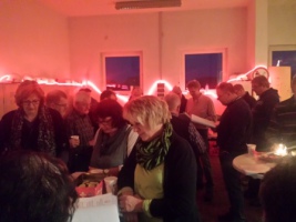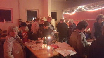 50 Adventssinger begrüßte Ortsbrandmeister Heino Bensemann im weihnachlich geschmückten Feuerwehrgerätehaus. Nach einem heißen Glühwein bewiesen diese, unter der musikalischen Leitung von Frank Bremer ihre Sangeskünste. Die Pausen zur Regenerierung der Stimmbänder füllten Elke Schmidt mit Anekdoten aus ihrer Jugend und Ehrenbrandmeister Heinz Logemann mit zwei etwas anderen Weihnachtsgeschichten.