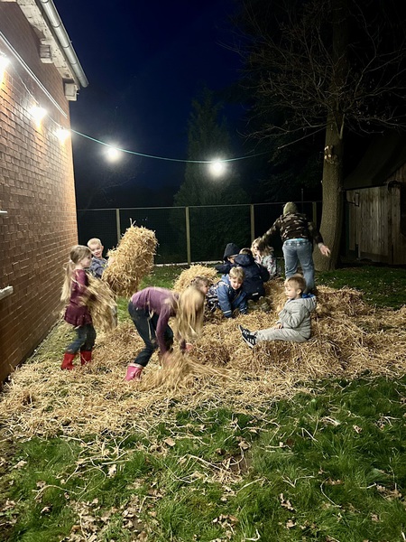 Vor allem für die Kleinsten hatte das diesjährige Osterfeuer einiges zu bieten. Zum einen wurde eine große Ostereier-Suche mit 900 versteckten Leckereien veranstaltet, in Anlehnung an das 900-jährige Jubiläum. Natürlich wurde diese Suche vom Osterhasen begleitet. Wer wollte, konnte sich danach beim Spielen im Stroh vergnügen oder seinen Hunger mit frischem Stockbrot stillen.