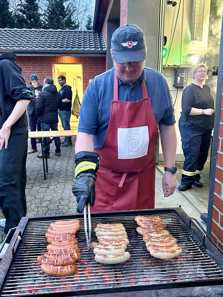Bei kühlem, aber trockenen Wetter war gegen 22 Uhr das Feuer schon gut runtergebrannt und die Pommes, die Wurst und das Stockbrot restlos ausverkauft. Die Feier verlegte sich später größtenteils in die Fahrzeughalle, wo sie irgendwann in den frühen Morgenstunden endete.