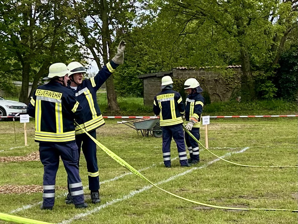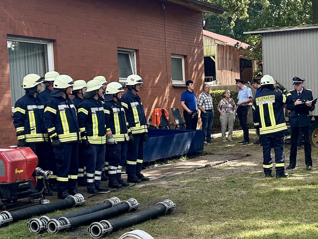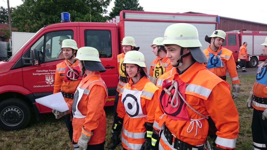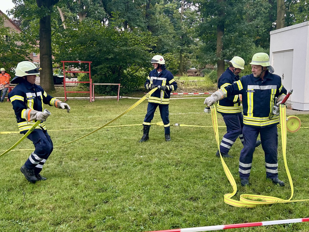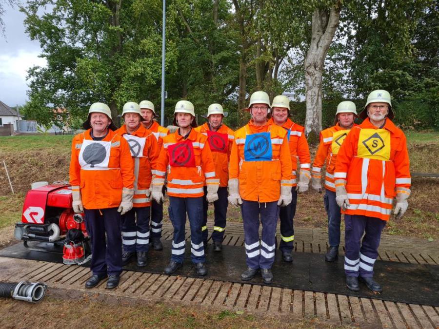 Das Grinsen wollte nicht aus dem Gesicht von Ortsrandmeister Heino Bensemann weichen. Verantwortlich dafür war nicht das gute Wetter in Wesenstedt, sondern die Leistungen der beiden Wettbewerbsgruppen. Gut verstanden hatte die Gruppe um Melanie Osterholz den neuen Leistungsvergleich der erstmals in der Samtgemeinde durchgeführt wurde.Sie siegte vor der gastgebenden Mannschaft aus Wesenstedt.Die Oldie Wettbewerbsgruppe um Gruppenführer Bert Ullrich konnte sich ebenfalls vor den Gastgebern durchsetzen und gewann den Alterswettbewerb zum dritten Mal in Folge. Somit bleibt der von Ludwig Stubbemann gestiftete Wanderpokal da, wo er hingehört. Im Gerätehaus der Ortsfeuerwehr Affinghausen.
