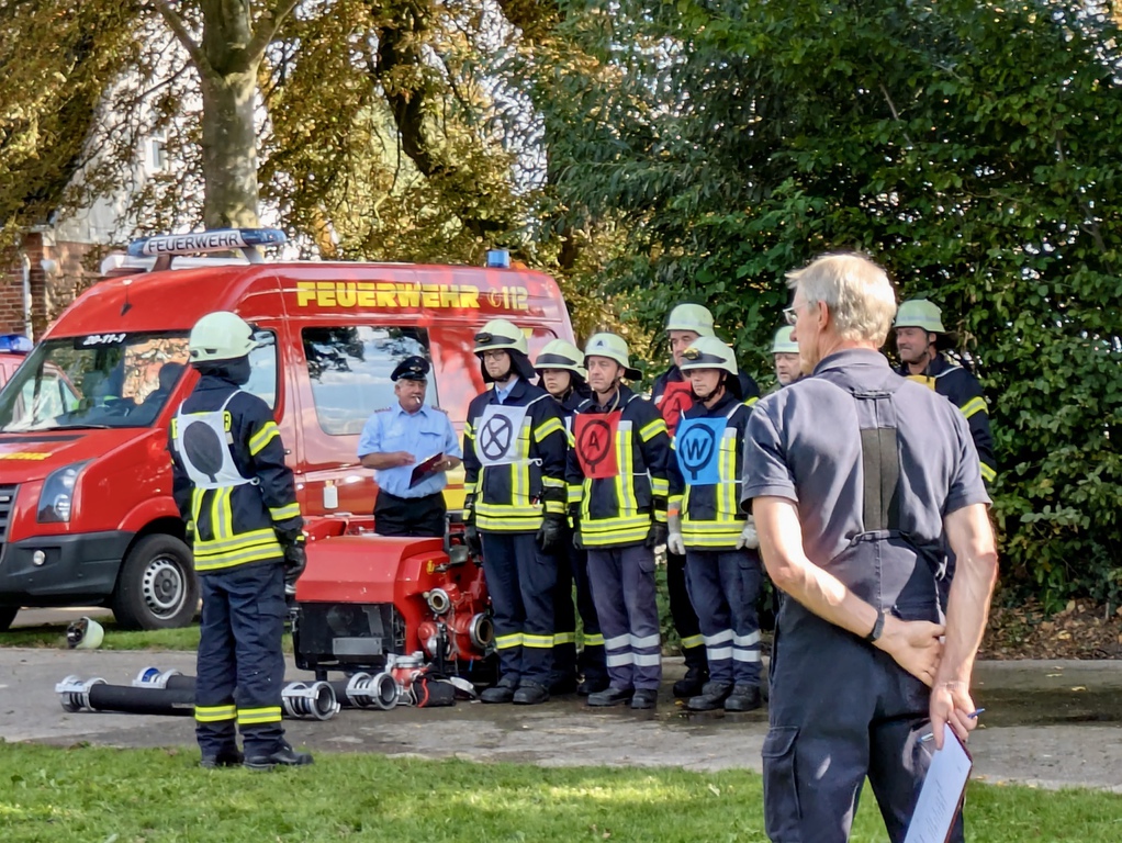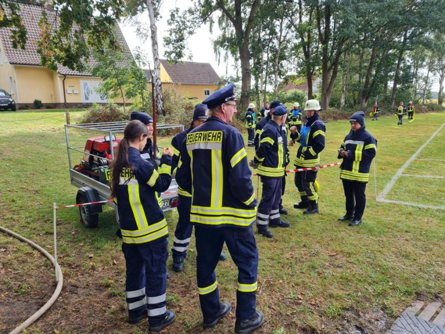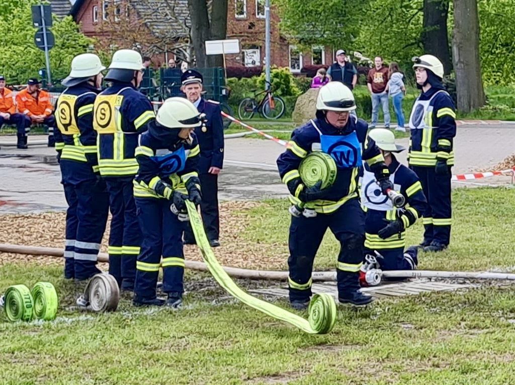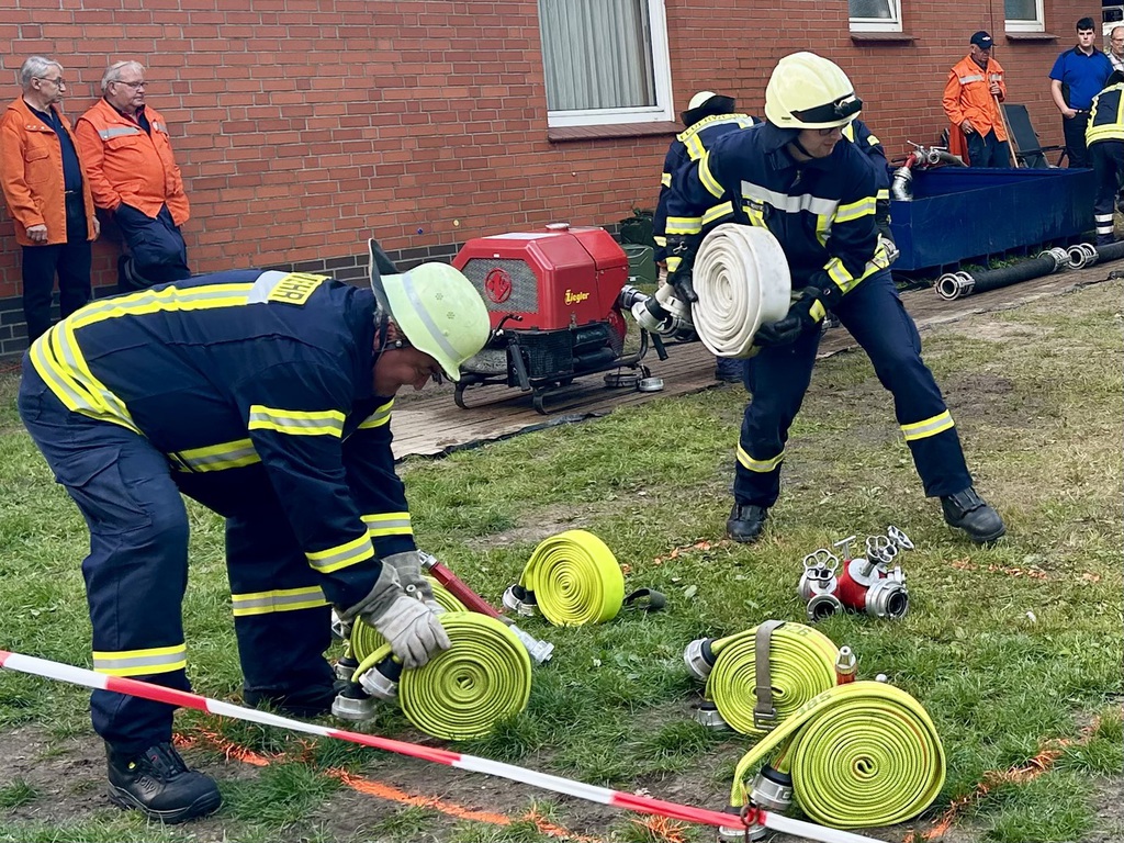 Das Grinsen wollte nicht aus dem Gesicht von Ortsrandmeister Heino Bensemann weichen. Verantwortlich dafür war nicht das gute Wetter in Wesenstedt, sondern die Leistungen der beiden Wettbewerbsgruppen. Gut verstanden hatte die Gruppe um Melanie Osterholz den neuen Leistungsvergleich der erstmals in der Samtgemeinde durchgeführt wurde.Sie siegte vor der gastgebenden Mannschaft aus Wesenstedt.Die Oldie Wettbewerbsgruppe um Gruppenführer Bert Ullrich konnte sich ebenfalls vor den Gastgebern durchsetzen und gewann den Alterswettbewerb zum dritten Mal in Folge. Somit bleibt der von Ludwig Stubbemann gestiftete Wanderpokal da, wo er hingehört. Im Gerätehaus der Ortsfeuerwehr Affinghausen.