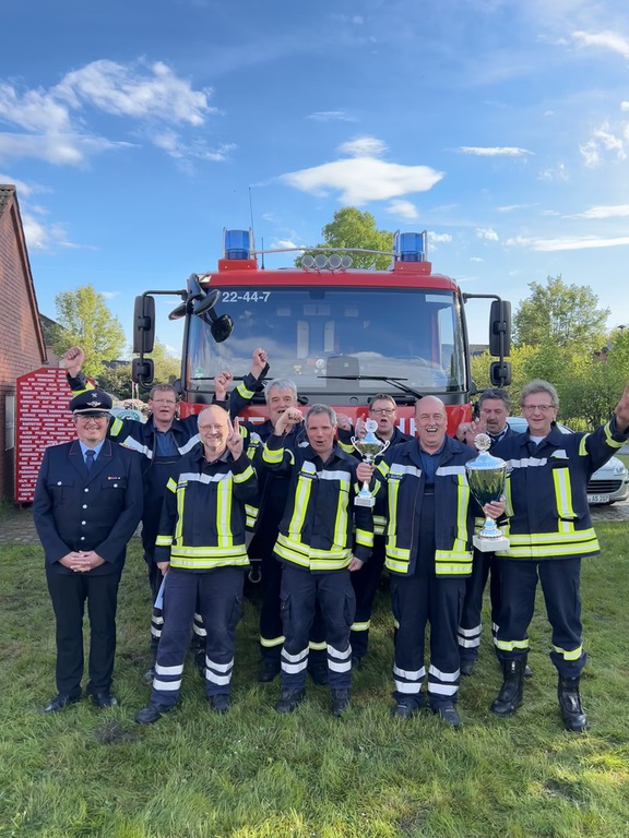 Der von Ludwig Stubbemann gestiftete Wanderpokal bleibt für ein weiteres Jahr in Affinghausen. Die Altersgruppe unserer Feuerwehr errang auch bei den diesjährigen Samtgemeindewettbewerben den 1. Platz.