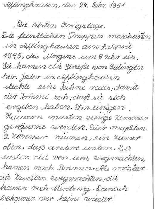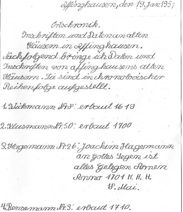 Nachfolgend seht ihr in Auszügen eine Dorfchronik, die Erna Kafemann geb. Beneke als junge Schülerin 1951 erstellt