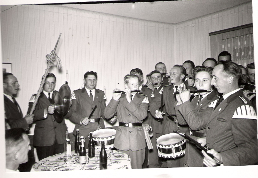 Unser Spielmannszug wurde 1957 auf der Jahreshauptversammlung des Schützenvereins gegründet. Hier einige der Gründungsmitglieder und der ersten Übungsabende.